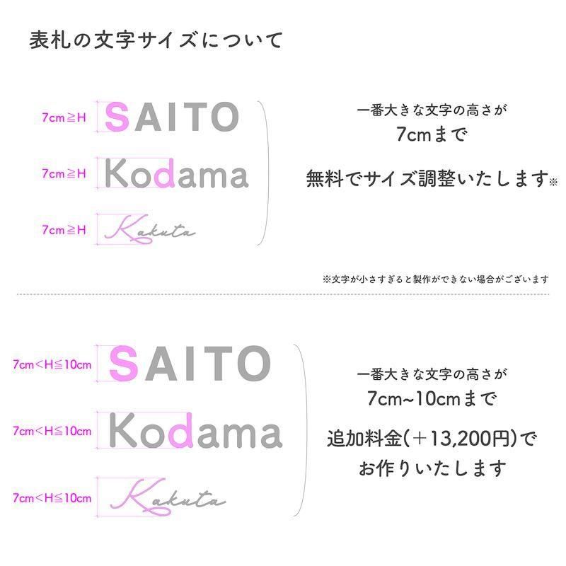 サイズ:文字高さ7cmまで無料で調整可能。
