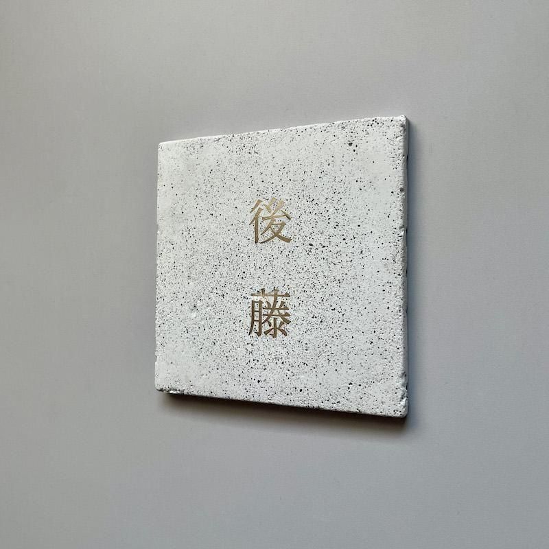 ストーン調の樹脂に埋め込んだ表札です。(写真サンプル | 樹脂の色:ホワイト)
